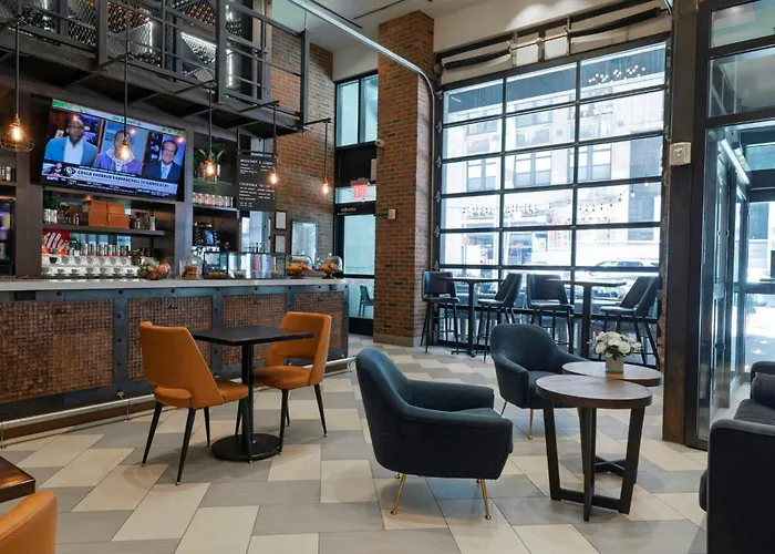 This New York hotel serves a cooked-to-order breakfast in the morning. In the onsite AVA Social restaurant, guests can have their lunch while enjoying American cuisine. Steaks and toasts are available in the rooftop bar in the evening. Guests can enjoy breathtaking views from this bar. There is a bar serving American food just 5 minutes' walk away.