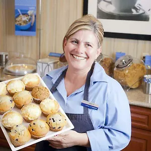 The hotel provides a free buffet breakfast in the lobby. The nearby dining opportunities include Le Rendezvous Cafe, which is just a short walk down to this Colton property.