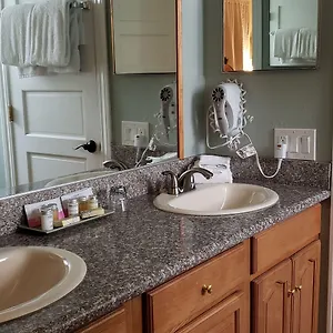 Certain rooms have a stone fireplace along with a sofa set for guests' convenience. They are furnished with comfortable decor. Bathrooms include a spa bathtub together with comforts such as hairdryers and towels.