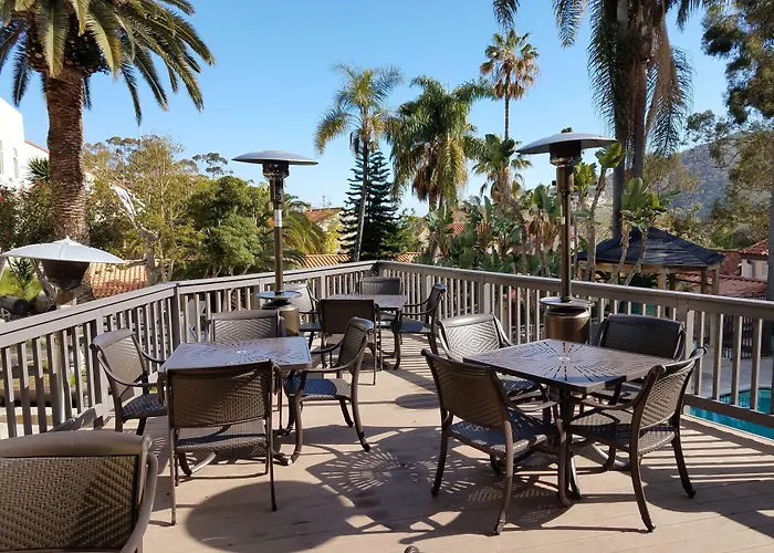 Placed about a 14-minute walk from the art deco Wrigley Memorial and Botanical Garden, the charming Catalina Canyon Inn Avalon offers a meeting room and a conference space with a range of business amenities. Boasting a hot tub, sauna facilities and an outdoor swimming pool onsite, this 3-star pet-friendly hotel features an outdoor pool along with a quiet location.