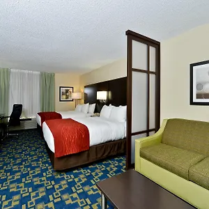 The smoke-free Comfort Inn & Suites Near Universal Orlando Resort-Convention Ctr offers 200 rooms, some of them feature Wi-Fi and a flat-screen TV with satellite channels, as well as comforts such as an individual climate control and an iron with ironing board. They have spacious interior. The private bathrooms are appointed with a shower and a hot tub, and such comforts as a hair dryer and toiletries.