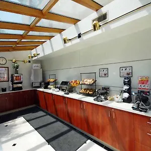 There is a free buffet breakfast served at the hotel. This SeaTac property is right at the restaurant 7-Eleven.