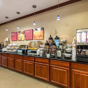 The Comfort Suites Galveston offers buffet breakfast with cereals, fresh fruits and meat.