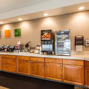 The Comfort Suites Mattoon Illinois serves a free continental breakfast with eggs, hot food items e meat. The restaurant Wendy's lies within a short walking distance of the property.