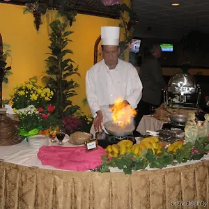There is a lounge bar, which offers an open fireplace in its interior design. Seafood and steaks are offered here for all tastes.