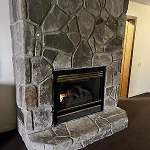 Certain rooms have a stone fireplace along with a writing desk for guests' convenience. They are decorated with elegant furniture.