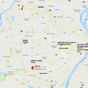 Woodbine Center Shopping Center is placed approximately a 10-minute ride away, and the Long-standing 105-acre Laumeier Sculpture Outdoor Park is nearly 17 minutes on foot from the 2-star Days Inn By Wyndham St. Louis Lindbergh Boulevard.