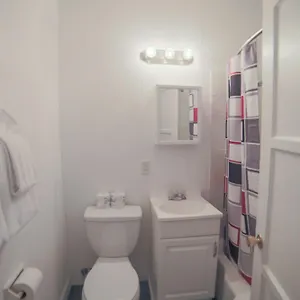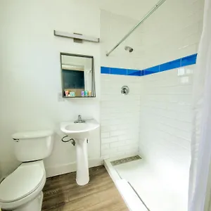 The private bathrooms feature hairdryers and toiletries.