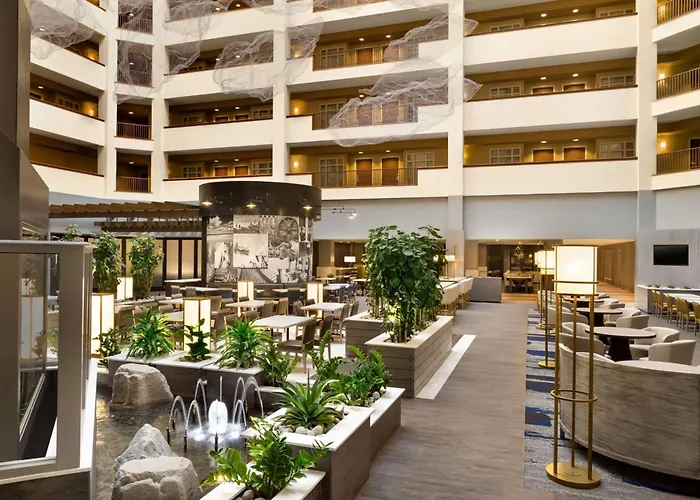 Featuring a cash machine and a lift, the 3-star Embassy Suites Dallas - Dfw Airport North Grapevine lies merely 1.4 km from the diverse-scale shopping mall "Grapevine Mills". Offering an indoor swimming pool together with 329 rooms, the deluxe hotel is positioned close to a motorway.