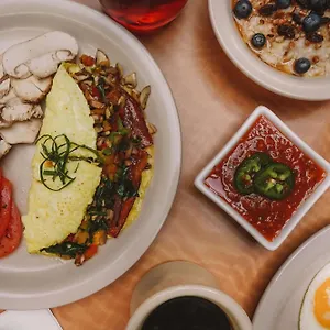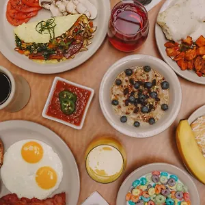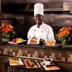 In the Embassy Suites you will be treated to a free cooked-to-order breakfast daily. The on-site restaurant, Grill, serves American cuisine for breakfast. There is a restaurant serving American food just 1 km away.