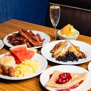 The Excalibur Hotel And Casino Las Vegas serves an Italian breakfast in the morning. The American Johnny Rockets restaurant offers a menu of American cuisine. Snacks and steaks are available in the pool bar in the evening. There is a quick bites serving Asian food a 5-minute walk away.