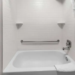 The allergy-friendly rooms have private bathrooms with a bathtub and a separate toilet along with hair dryers and towels. The units are designed in a modern-style manner.