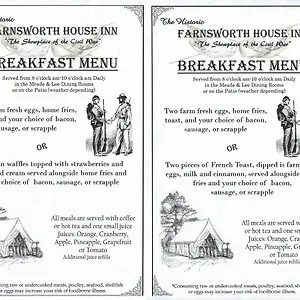 The Farnsworth House Inn serves a free American breakfast. In addition, Sweneys Tavern restaurant has a menu with all kinds of American dishes. There is a dessert restaurant serving American food approximately a 5-minute walk away.