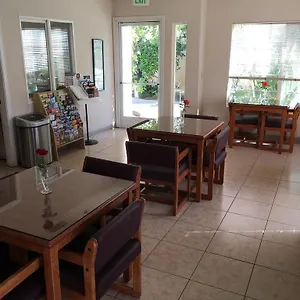 This Fresno hotel features a free continental breakfast daily.