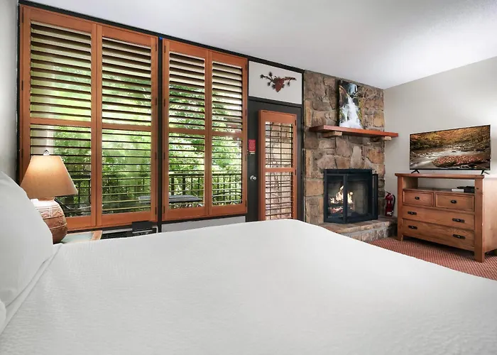 Offering basketball, skiing and golf, the 3-star Gatlinburg Town Square By Exploria Resorts is located in the heart of Gatlinburg, within a 5-minute stroll of St Mary's Catholic Church. Situated relatively close to Ole Smoky Tennessee Moonshine Distillery, this smoke-free resort features a swimming pool and a hot tub and an outdoor swimming pool.