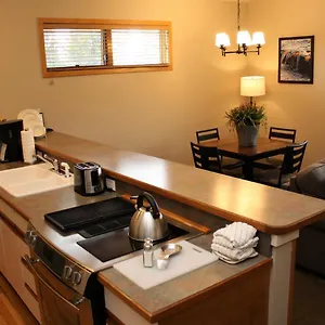 Certain rooms have a stone fireplace along with a sofa for guests' convenience. A tub, together with such comforts as a hairdryer and guest toiletries are also provided. Some units include views of the mountain. Looking onto the mountain, the apartment features kitchen with a microwave oven, a dishwasher and a fridge.