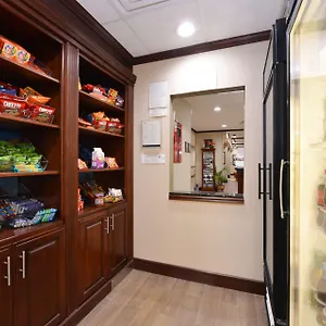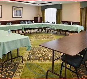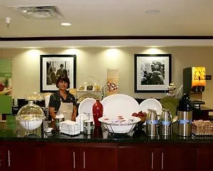 There are 64 spacious rooms at the Hampton Inn, some of them have a carpeted floor, and modern facilities such as cable channels. Certain units feature standard interior along with carpeted flooring. The private bathrooms are appointed with a hot tub together with free toiletries and towels.
