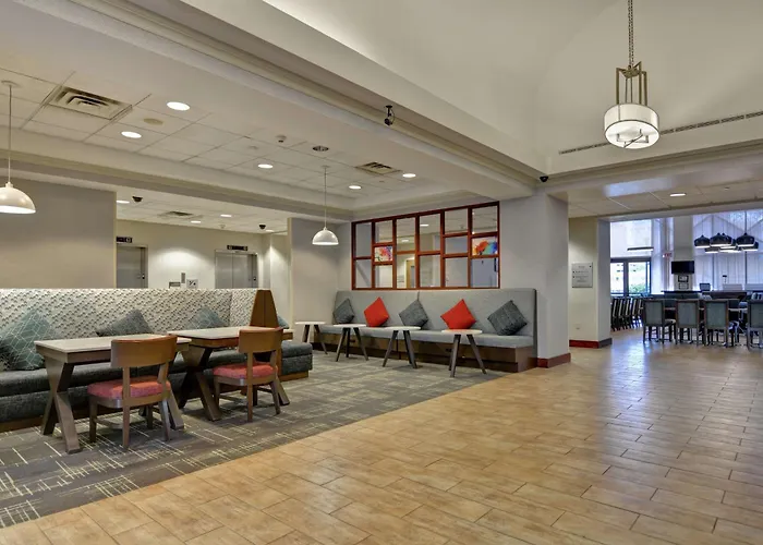 Placed 10 minutes by car from Red Bull Arena Stadium, the 3-star Hampton Inn & Suites Newark-Harrison-Riverwalk offers a conference space and a meeting room with a range of business amenities. Located approximately a 6-minute stroll from House Of Mariatus and a stroll from Indian and the Puritan Historic Monument, this family-friendly inn features fitness classes and spa therapy.