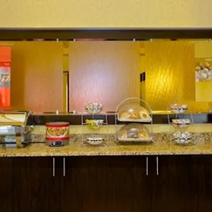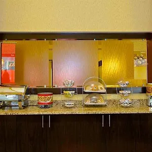The hotel offers cold buffet breakfast with hot waffles, fresh fruits, and cold buffet dishes. Guests can dine at Outback Steakhouse, serving American dishes, or at O'Charley's, located approximately a 7-minute walk away.