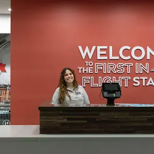The Hampton Inn offers a free American breakfast daily. Guests can quench their thirst in the wine bar with their favourite drink. The restaurant Subway is around 6 minutes' walk away.