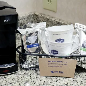 The Hampton Inn serves buffet breakfast in the morning. The accommodation is not too far from the restaurant Popeyes Louisiana Kitchen.