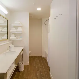 Together with a bath, the private bathrooms have hair dryers and towels.