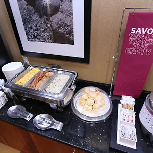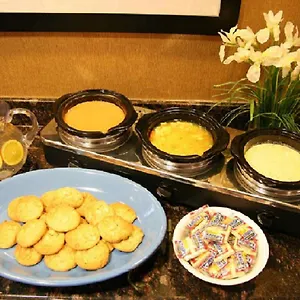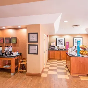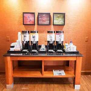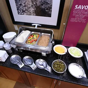 The Hampton Inn serves a free buffet breakfast. The accommodation is moments from the quick bites McDonald's.