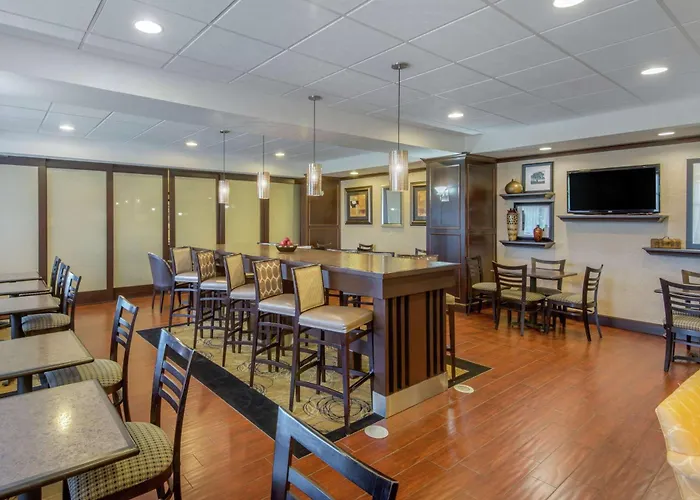 A free buffet breakfast is offered daily. This Meadville hotel invites guests to have a drink at a coffee bar.