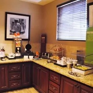 The Hampton Inn offers a daily buffet breakfast. There is a lounge bar onsite. Guests can dine at the restaurant Subway, which is 7 minutes' walk away.