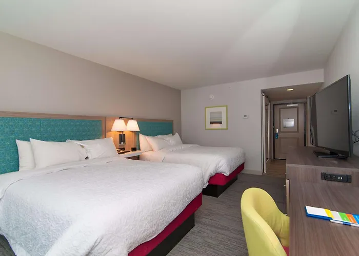 The 3-star Hampton Inn Norwich is set at a 3 km distance from First Baptist Church of Norwich and about a 10-minute ride from the multi - purpose Mohegan Sun Arena. This modern inn is placed within 10 minutes' drive of Casino Of The Sky, and provides guests with a Jacuzzi and an indoor pool.