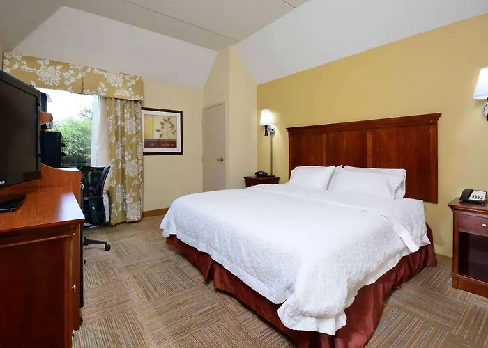 The lovely Hampton Inn Raleigh Capital Blvd North is nestled nearly a 5-minute drive from Triangle Town Center, offering 131 rooms and featuring a fitness centre and various recreational opportunities. Boasting a seasonal outdoor swimming pool, the 3-star inn is nestled around a 10-minute ride from natural attractions like the forested Marsh Creek Park.