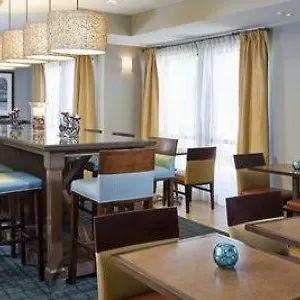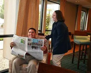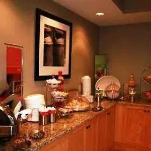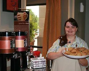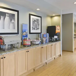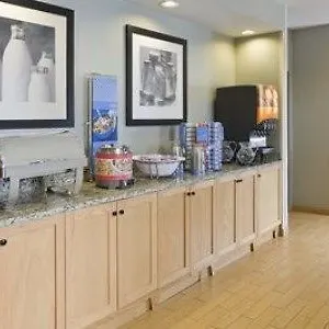 The Hampton Inn offers a hot breakfast daily. Drinks are available at the snack bar.