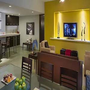 Some of the 348 modern rooms are equipped with an individual climate control, an ironing set and a fan, as well as entertainment amenities such as free Wi-Fi and a flat-screen TV with satellite channels. Certain units feature modern-style interior along with marble flooring. The safe bathrooms offer a Jacuzzi bath and a sauna together with a hairdryer and bath sheets. Guests will also enjoy spectacular views of the pool. Additionally, a kitchen with a microwave, coffee/tea making facilities and refrigerators are available in an apartment.