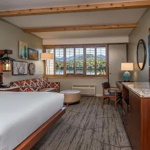 The unique 4-star High Peaks Resort Lake Placid is 12 minutes' stroll from Lake Placid Winter Olympic Museum and features yoga classes, spa therapy and various recreational opportunities. Boasting a seasonal outdoor swimming pool, the pet friendly hotel is nestled a walk from natural attractions like Mirror Lake.