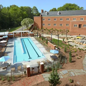 Offering a restaurant and a storage room, the wonderful Hilton Durham Near Duke University lies in a business neighbourhood, at a 2.2 km distance from Bennett Place Historic Site and about a 15-minute ride from American Tobacco Campus. You can enjoy sauna facilities and an outdoor swimming pool at the 3-star hotel, while taking advantage of its convenient location a few minutes drive from Research Triangle Park.