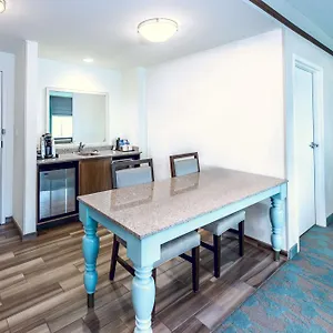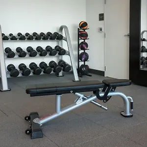 Guests can work out in a gym facility during their stay.