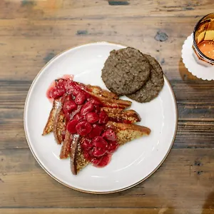The Hilton Garden Inn Outer Banks/Kitty Hawk Kitty Hawk serves traditional American breakfast in the morning. The à la carte Aviator restaurant focuses on American cuisine. There is a dessert restaurant serving American food just 100 metres away.