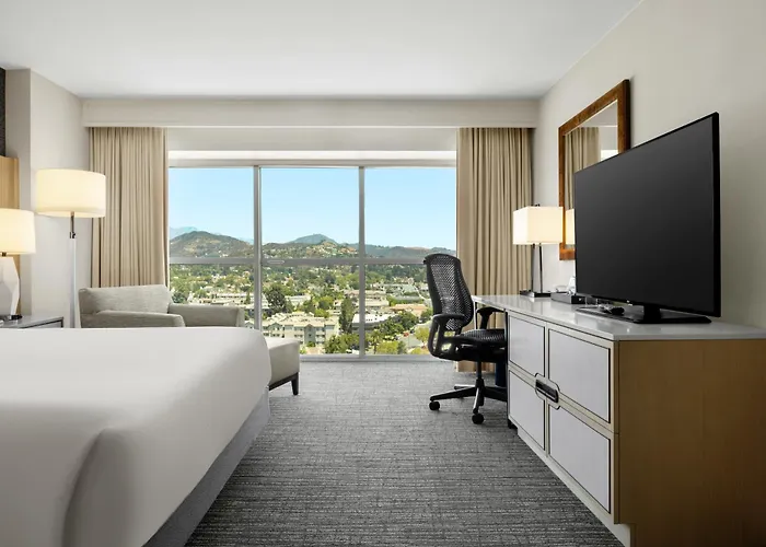 2.8 km from the 133-acre Los Angeles Zoo, the 4-star Hilton Los Angeles North-Glendale & Executive Meeting Center Hotel includes 351 rooms. The hotel features cars for rent, as well as Wi-Fi in public areas.