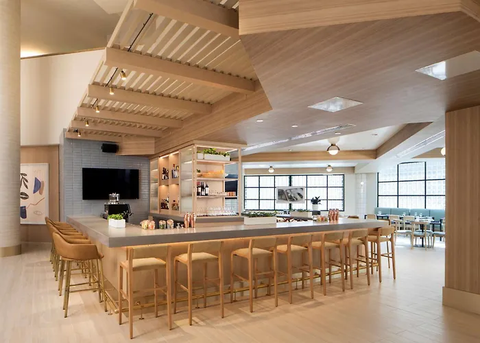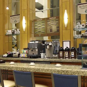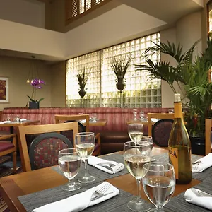 A daily buffet breakfast is served in the morning for guests of the Hilton Santa Monica Los Angeles. American dishes are prepared at Monicas Eatery restaurant on site the accommodation. Gastronomic options include a lounge bar. There is a cafeteria serving American food nearly 5 minutes' walk away.