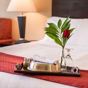 Some of the 444 comfy rooms come with a mini-fridge, tea and coffee making equipment, and essentials such as blackout drapes, central heating and an iron/ironing board. Guests can also use a tub and a roll in shower, along with such amenities as a hairdryer and complimentary toiletries. Certain units overlook the pool.