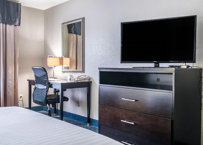 The 3-star Holiday Inn Express & Suites Roanoke Rapids, located approximately 5 km from Twilight Baptist Church, boasts a swimming pool and a fitness room. Thanks to its ideal location, the smoke-free inn stands within 25 minutes' walk of Chockoyotte Country Club, which is a great place to have a fun time.