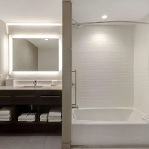 The Home2 Suites By Hilton Anaheim Resort features 100 rooms with a flat-screen TV with satellite channels, as well as tea/coffee making equipment. For more comfort, hair dryers and towels together with a shower and a hot tub are provided. A separate toilet and a shower are available in private bathrooms. In addition, guests are welcome to use a kitchenette with a microwave, coffee and tea making facilities, and fridges in a suite.