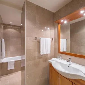 The property has 166 rooms appointed with a flat-screen TV with satellite channels, as well as self-catering options such as a mini fridge bar. These spacious units are furnished with a carpeted floor along with a wardrobe. The spacious bathrooms include a Jacuzzi bath and a separate toilet, and comforts such as hairdryers and towels.