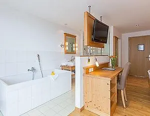 The rooms at the accommodation have an ironing set and central heating. Some of them comprise an adjoining terrace and a balcony, appointed with a sofa and a writing desk. They are furnished with cosy decor. The spacious bathrooms are appointed with hair dryers and towels, and necessities such as a roll in shower and a bath. Certain units offer views of the mountain.