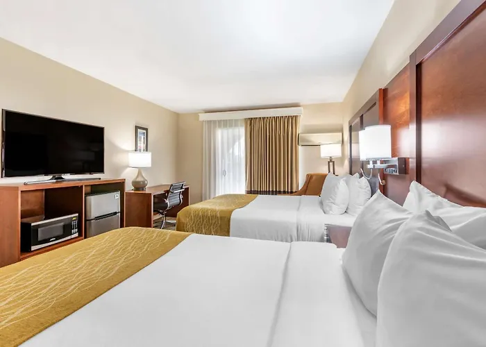 This Escondido property is placed about 20 km from McClellan-Palomar airport and a 10-minute drive from such cultural venues as Roynon Museum of Earth Science and Paleontology. The Comfort Inn Escondido San Diego North County is based close to a petting zoo, a bar and a winery, a walk from Lake Hodges Pedestrian Suspension Bridge. Families travelling to Escondido will enjoy being 5 minutes by car from EcoVivarium Zoo.