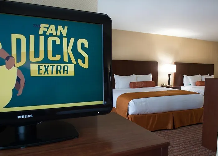 The home field "Autzen Stadium" is located 5 minutes by car from this Eugene property while the university Museum of Natural and Cultural History is less than 11 minutes' walk away. Shopping venues in the area include 5th Street Public Market (1.8 km) and the weekly Saturday Market (2 km). The comfortable hotel is placed a few minutes drive from Willamette Valley. The 3-star Best Western New Oregon Hotel is placed at a moderate distance from the 373 acre Alton Baker Park. Due to a location near a tube station, this accommodation gives quick access to other parts of Eugene.