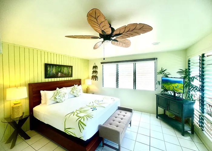 Located nearly a 10-minute walk from Kona Le'a Plantation, the accommodation is also within a 7-km distance of entertainment venues like Kailua Pier. The hotel is a 10-minute drive from Magic Sands Beach Park in Kailua-Kona. This Kailua-Kona property is also a few minutes' drive from Kealakekua Bay. Kona Hawaii Guest House A Unique Hawaii Experience allows you to enjoy such natural sights as Pahoehoe Beach Public Park a 15-minute drive away. For those travelling from afar, Kona International airport is 30 minutes' drive away.