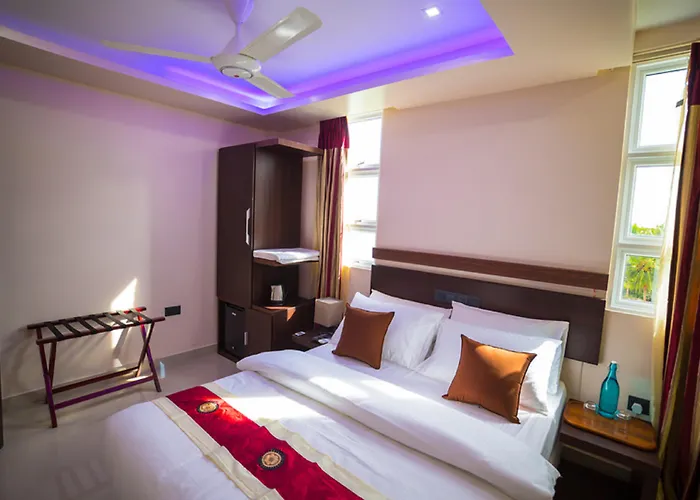You'll be within 3 km of Hulhule Island and in close proximity to Kuda Kudhinge Bageecha. This Male hotel offers proximity to natural sights like Rasrani Bageecha (1.2 km) and Villingili Public Beach (2.5 km). The accommodation is situated within 15 minutes' walk of Jumhooree Maidhaan, while Greater Male' Terminal bus station lies just 600 metres away. For those travelling from afar, Male airport is 10 minutes' drive away.