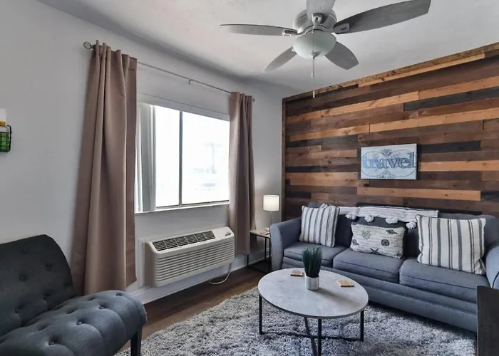 The 3-star Islander Beach Resort - New Smyrna Beach, located a mere 8 minutes' walk from Red Dog Surf Shop, offers a heated pool, Wi-Fi throughout the property. The resort is at a distance of 750 metres from New Smyrna Beach and features a Jacuzzi and an outdoor swimming pool.