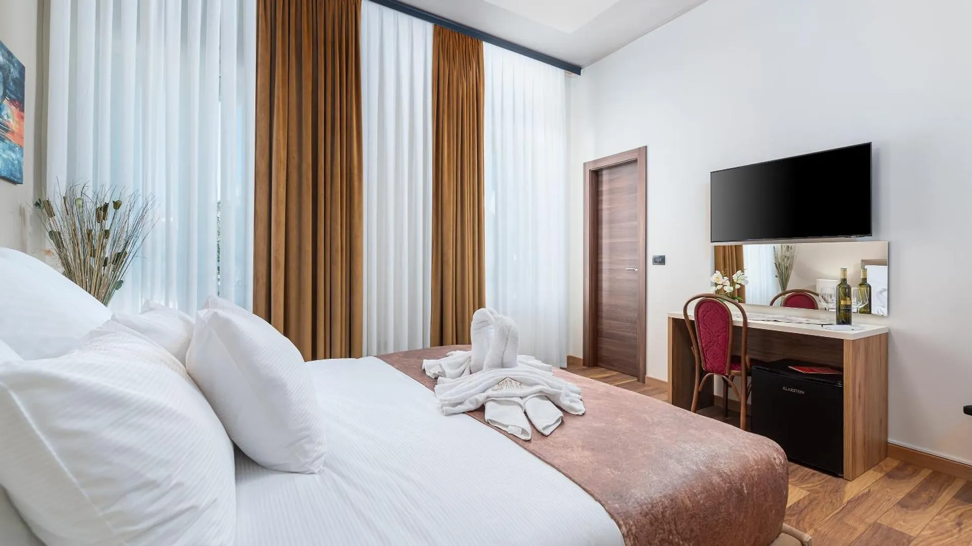 The smoke-free hotel is near the beach district of Porec, right near Euphrasian Basilica. Offering location within 5 minutes' drive of Porec Old Town, the exclusive accommodation is near pine trees. Nature lovers will appreciate the proximity to Adriatic Sea, which is approximately 5 minutes away by car. Bo Hotel Palazzo is situated within walking distance of Porec Zelena Laguna Park, and Porec bus station lies 10 minutes' walk away. For those travelling from afar, Pula airport is 49 minutes' drive away.
